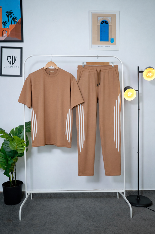 Pantalon et T-shirt Oversize en coton lourd 320 GSM Motif 3 Bandes découpe couture